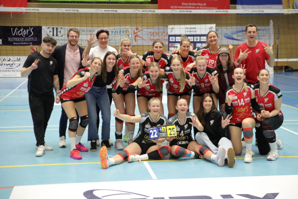 Ohne Libera Katharina Richter und Außenangreiferin Natascha Oßner-Niemczyk, die beide krankheitsbedingt ausfielen und ohne die Langzeitverletzten musste das Team von Lohhofs Trainer Fabian Gumpp antreten. Zu Beginn der Partie taten sich die Lohhoferinnen allerdings zunächst schwer. Die Gäste aus München starteten konzentriert und erspielten sich früh einen kleinen Vorsprung, sodass Lohhof zunächst einem Drei-Punkte-Rückstand hinterherlaufen musste. Im Laufe des Satzes fand das Team jedoch immer besser ins Spiel, stabilisierte Annahme und Angriff und drehte den Durchgang schließlich noch zum 25:22-Satzgewinn.